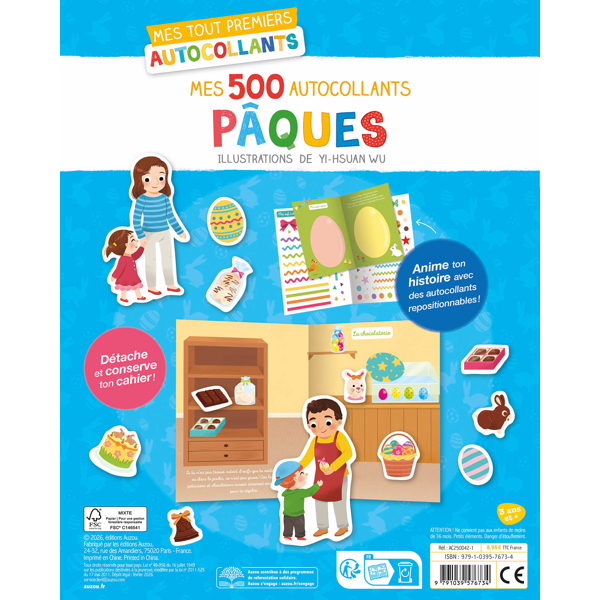 Les enfants vont adorer compléter les décors de ce cahier à l'aide des 500 autocollants, sur le thème de Pâques !