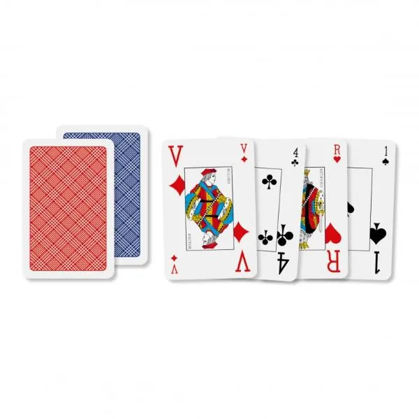 Les cartes sont au format classique européen, le marquage et les habillés sont en Français, et les index sont surdimensionnés pour une lecture facilitée.
