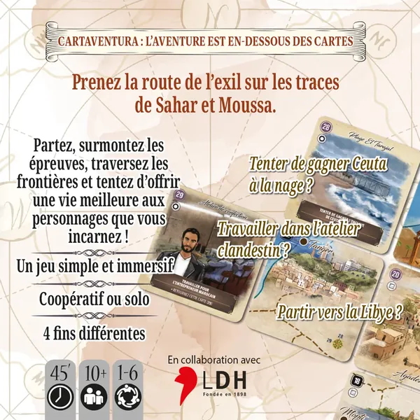 Un livret historique, rédigé avec l'aide de spécialistes, offre par ailleurs un complément d’information à chaque scénario. Le système de jeu de Cartaventura, simple et inédit permet de rejouer chaque scénario plusieurs fois afin de découvrir toutes les fins possibles (5 fins différentes par scénario). Il n'y a aucun livret de règles, toutes les instructions sont directement indiquées sur les cartes !