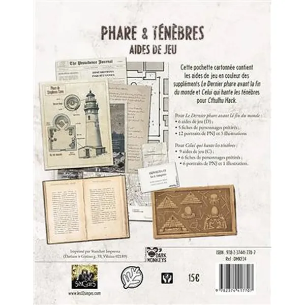 Cette pochette contient 30 aides de jeu en couleurs, issus des suppléments Celui qui hante les ténèbres et Le dernier phare avant la fin du monde.