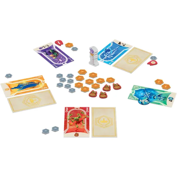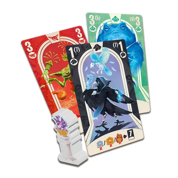 À chaque manche, choisissez deux cartes en même temps que vos adversaires et placez-les face cachée. Révélez en même temps votre carte de droite. Le joueur possédant le pion Initiative choisit laquelle de ses deux cartes il conserve dans l’Arène et en applique l’effet, avant de passer l’Initiative à un autre joueur. Quand toutes les cartes sont choisies, le combat commence ! Les deux Champions les plus puissants remportent un jeton Butin (Or ou Argent). Chaque Champion possède un pouvoir unique capable de renverser la partie.