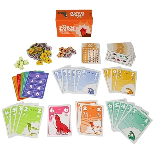 Farm Hand est un jeu de plis unique, alliant prédiction et détection ! Les joueurs connaissent les couleurs des cartes adverses, mais pas leur valeur. Faites de votre mieux pour prédire le nombre de plis que vous gagnerez, tout en empêchant vos adversaires d'en faire autant !