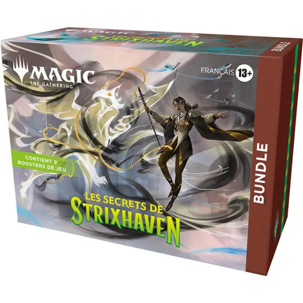 Le bundle est un cadeau idéal pour les fans de Magic ou pour les débutants qui viennent dans votre magasin. Ils contiennent un peu de tout pour démarrer la collection d'un joueur ; ils renferment même une boîte de deck robuste Les secrets de Strixhaven, ainsi qu’un compteur de points de vie Spindown géant sur le thème de l'extension.