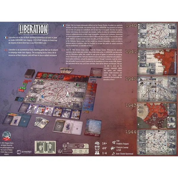 Le jeu possède 5 scénarios principaux allant de 1940 jusqu’à la libération de Paris en 1944. Chaque scénario possède son twist qui obligera chacun à jouer différemment. Le jeu peut être jouer par scénario ou sous la forme d’une campagne (non legacy) où chaque scénario influe pour la suite.