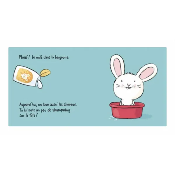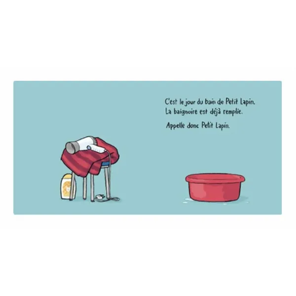 La baignoire est remplie. Appelle donc Petit Lapin !