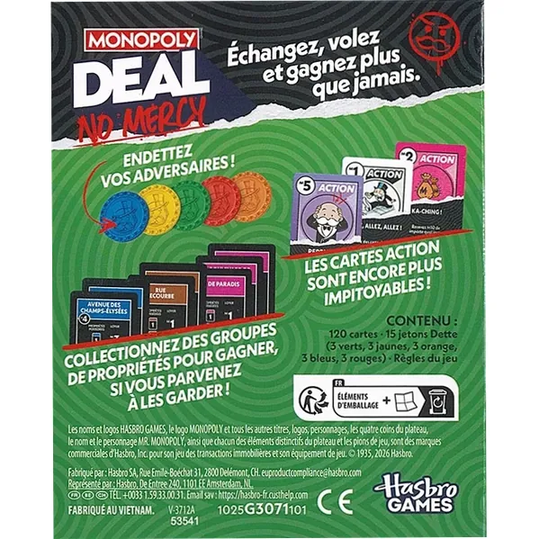 Passez au niveau ultime du Monopoly classique avec Monopoly Deal No Mercy, le jeu où la pitié n’a pas sa place !