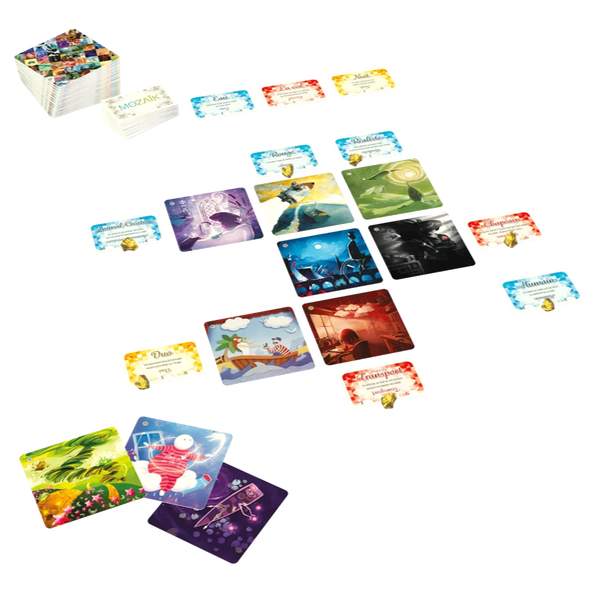 Une partie de Mozaïk se déroule en 9 tours de jeu, au cours desquels vous remplissez votre grille personnelle : un carré de 3x3 images, encadré de mots, placés aux extrémités des lignes et des colonnes. Chaque mot rapporte des points, s'il s’associe avec les images de sa ligne ou colonne. Plus un mot est dur à associer, plus il rapporte de points.