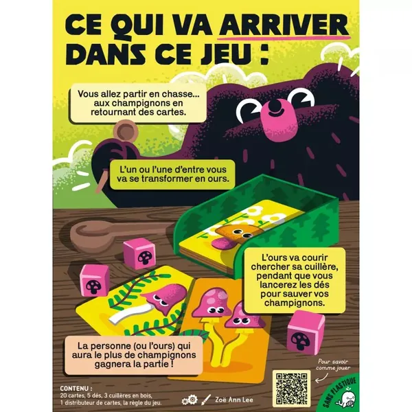 Les autres tentent alors leur chance aux dés pour ne rien vous laisser... La personne (ou l'ours) qui a récupéré le plus de champignons au bout de 3 manches remporte la victoire!