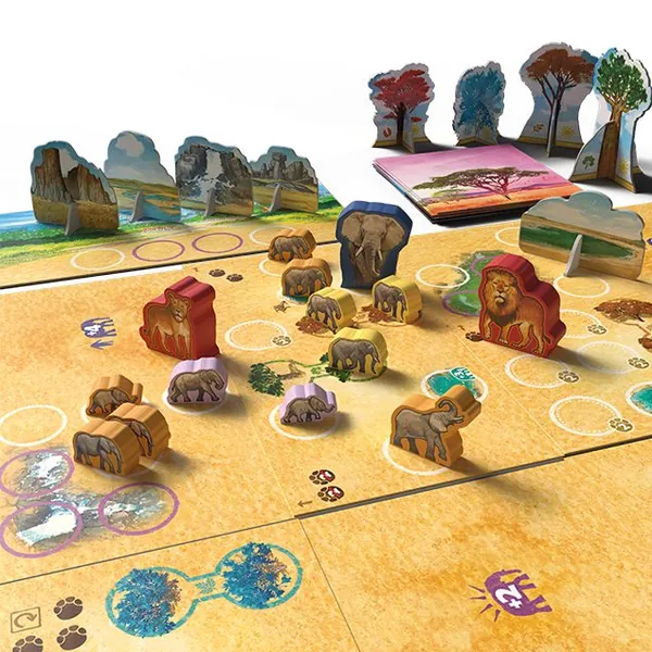 Tracez votre chemin de repères en repères, échappez aux lions féroces et assurez la survie de votre troupeau jusqu’au point d’eau en jouant simplement une carte à votre tour.
