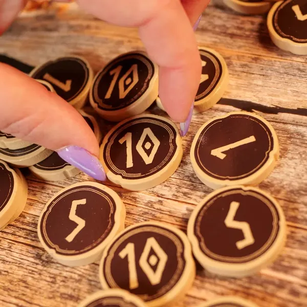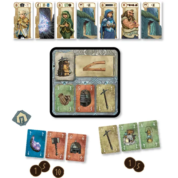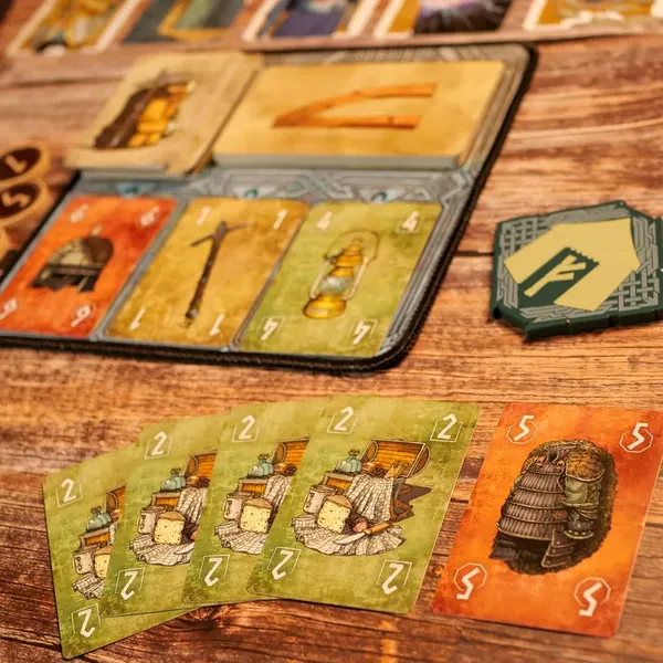 - Trök : choisissez 3 de vos cartes et révélez-les: la valeur totale la plus élevée détermine le maître du commerce. A votre tour, choississez une carte devant une autre personne et ajoutez-la à votre main, ou échangez-la avec le marché. C'est à la personne chez qui vous venez de vous servir de prendre une carte devant une autre personne et ainsi de suite jusqu'à que toutes les cartes soient prises.